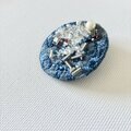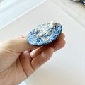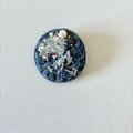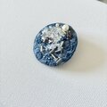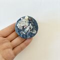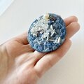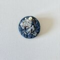 ブルーの丸型刺繍ブローチ