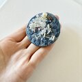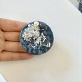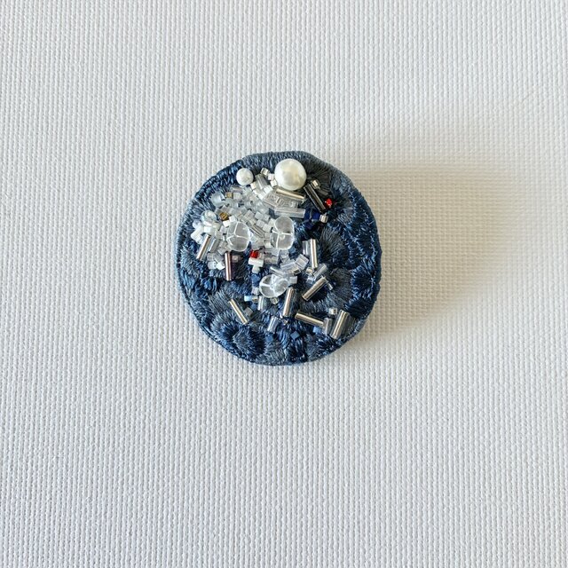 ブルーの夜空に星々が輝いてる、そんな空をブローチに閉じ込めたようなイメージで制作しました。