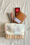 ラタンのポーチにショルダーを付けて、肩に掛けられるようにしました。