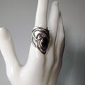 瑞々しいブルー、そしてカットがとても美しいトパーズを、優しく葉で包み込んでいるデザインです。 燻加工で葉の陰影も美しく、とても美しいリングでした。