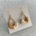 ラメ糸が煌めく細身のフレームに色、大きさの異なる2種のビーズをボリューミーに纏わせた雫型ピアス。