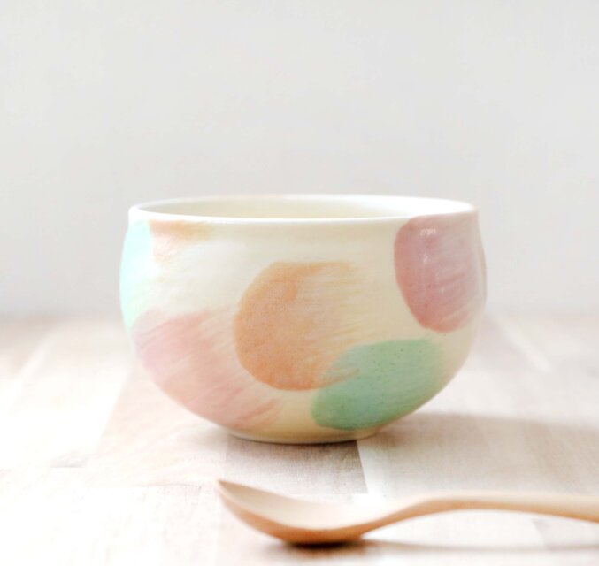 色化粧 刷毛目模様の大きめボウル * 春色 * 2