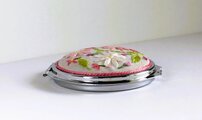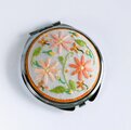 刺繍用の布地にお花の刺繍を施したコンパクトミラーです。