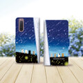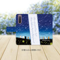 Android シンプル手帳型スマホケース(カメラ穴あり/はめ込みタイプ)【ほのぼのにゃんこ(流れ星と蛍火)】