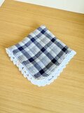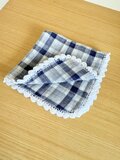 ダブルガーゼを2枚合わせにし、レース編みでふちどりをしました。