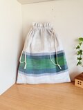 リネンと播州織コットン生地の巾着袋です。