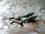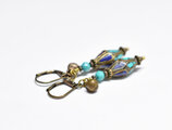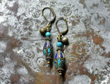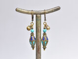 ラピス&ターコイズ象嵌ビーズとターコイズ、民族鈴のピアス