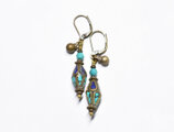 ラピス&ターコイズ象嵌ビーズとターコイズ、民族鈴を繋いだピアスです。