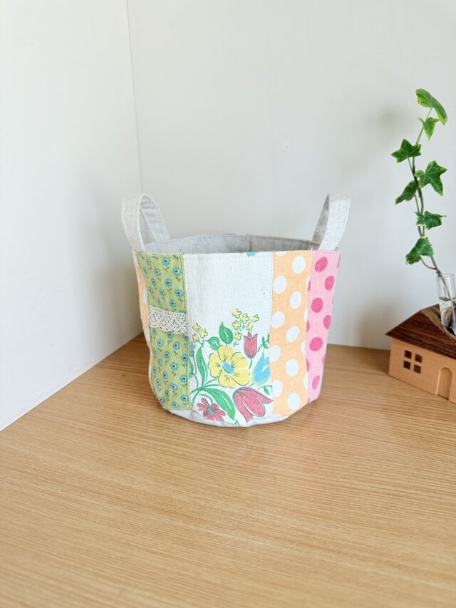 ちょっとした小物入れに。お菓子などを入れてギフトに。また、観葉植物などのポットカバーにも素敵です。