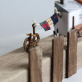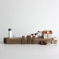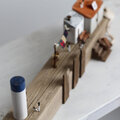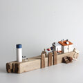 流木、ねじ・釘(赤錆加工)、ホワイトウッド(欧州スプルース、ドイツトウヒなど)、ステイン、ペンキ等で製作。ヤスリでダメージ感を演出しています。「潮騒とカモメの鳴き声、風の音」を感じていただければ幸いです。