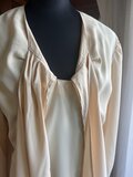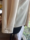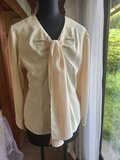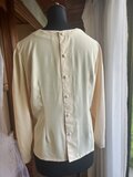 ポリエステル素材のブラウス 肌触りが爽やかです。 サイズはL からLL 肩幅40 身丈56 袖丈58 胸周り94 後ろボタン6個 よろしくお願いいたします