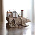流木、ねじ・釘(赤錆加工)、ホワイトウッド(欧州スプルース、ドイツトウヒなど)、ステイン、ペンキ等で製作。ヤスリでダメージ感を演出しています。「潮騒とカモメの鳴き声、風の音」を感じていただければ幸いです。