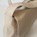 帆布のかばん…と聞くと、ハードで武骨なイメージですが、角に丸みのあるフォルムとシンプルなデザインにより、柔和で素朴なテイストになっています。