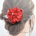 和風の赤いダリアのヘアクリップ お花 浴衣髪飾り ヘアクリップ 髪飾り お出掛け 赤 ダリア 浴衣 ヘアアクセサリー