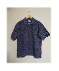 24 メンズ 開襟シャツ アロハシャツ 大きいサイズ 四角と錨 デッドストック浴衣地 1点物 半袖 夏