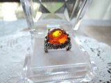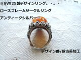 (1407)天然琥珀バルティックアンバーラウンドカボション14mmローズフレームサークルリングSV925製。・。・(^^♪