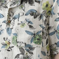 グレーで落ち着いた色合いに少しくすんだブルーやグリーンで描かれたお花が特徴的。