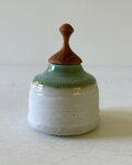 小壺型・銀彩・蓋物なんて可愛らしいフタモノなのでしょう。ひとつひとつ違っていて選ぶのも楽しかったです。 色味もカタチも木と器のコラボも最高なので、ちっちゃいけれどテーブルの主役に大抜てき!(他は何も置かない様にガンバります。) 個包装のあめちゃん10個入りました。 素敵なフタモノに、出会えて良かった! ありがとうございました。