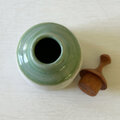 肩の張った感じのフォルムに、素朴な白地に淡いエメラルドグリーンがアクセントになった器です。