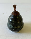 小壺型・銀彩・蓋物なんて可愛らしいフタモノなのでしょう。ひとつひとつ違っていて選ぶのも楽しかったです。 色味もカタチも木と器のコラボも最高なので、ちっちゃいけれどテーブルの主役に大抜てき!(他は何も置かない様にガンバります。) 個包装のあめちゃん10個入りました。 素敵なフタモノに、出会えて良かった! ありがとうございました。