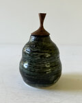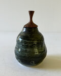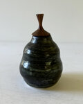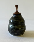 瓢箪みたいなフォルムに、渋い墨色の器です。