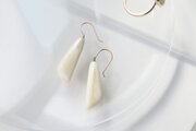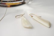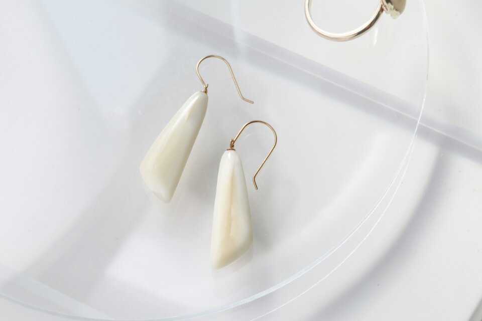 柔らかな印象の、とても素敵なピアスです。艶々とした乳白色の中に半透明な部分もあり 思っていた以上に繊細で綺麗な作品でした。大変貴重な素材とのこと、永く大切にさせていただきます。