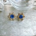 ブルーサファイアカラーが美しいラインストーンフラワーイヤリング。