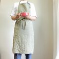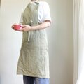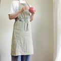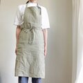 素材に高品質な素材、ベルギーリネン25番手を使用したバイカラーのワークエプロンです。