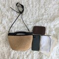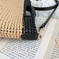 ラフィア風 丸底2way ショルダーバッグ(丸ハンドル・ブラック)