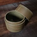 イタリアの良質なベジタブルタンニンなめし革を使用して作製しました、円柱型のレザーボックスです。