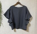 リネン100%のラッフルスリーブブラウス カシス商品が届きました。 何度もリピートさせてもらってます。 製法が丁寧で、フリルが可愛く二の腕がカバーされているデザインなので、これから楽しみです。ありがとうございました。