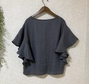 リネン100%のラッフルスリーブブラウス ブルーグレー