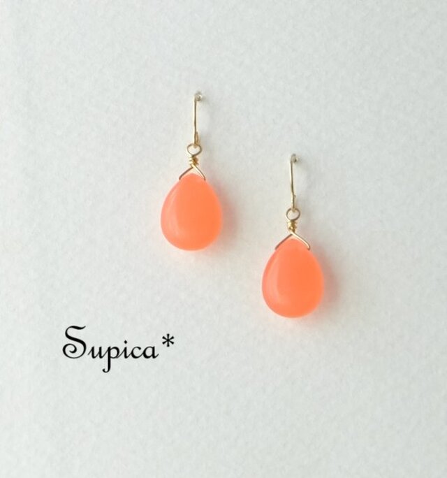 s189-630【天然石 オレンジジェード】14kgf ミカン色のピアス