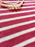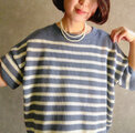 半袖 リネンニット ボーダー/ スミレ×白 美シルエット