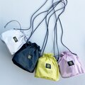 超軽量でポシェット使い、そして巾着のひもを持って手持ちの2wayで使える機能的で使い勝手も抜群のバッグです♪