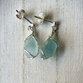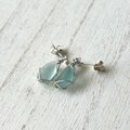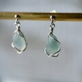 《スターリングシルバー/Silver925》空色シーグラスの揺れるスタッズピアス―いろんな空の色と共に―