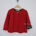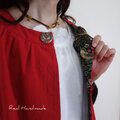 ボタンは一つ。第一ボタンのみ、輸入のいちご泥棒柄を使用した特別な飾りボタンを付けています。