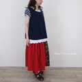 [Coordinate] リバティ飾りのネイビー×ボーダー肩リボンプルオーバー