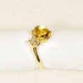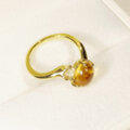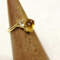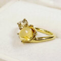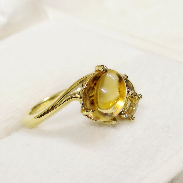 はちみつ色のぷっくりとしたシトリンと輝きの綺麗なインペリアルトパーズを留めた指輪です。2つとも11月の誕生石になります。