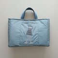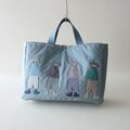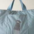 ブルーグレーの撥水性ナイロン生地をベースにしたトートです。