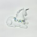 形の美しいユニコーンの白磁に、スミレのリースを描いて、プラチナの角とシルバーの立て髪で装飾しました。