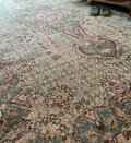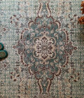モダンなピーコックグリーンと全体にかかるスレ感が シャビーさがより際立つトルコヴィンテージラグ