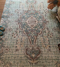 宝石のように美しい大きめメダリオンが印象的のこちらのラグは、