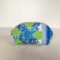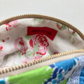ラウンドファスナーポーチ 黄緑の花と綿レース