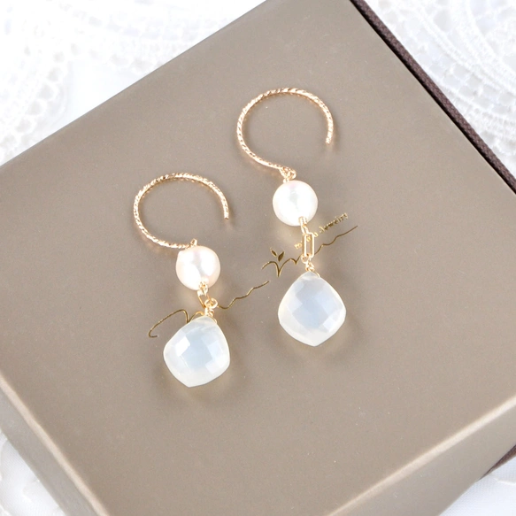 「白ほのか 」14kgf/ホワイトムーンストーンxアコヤバロックパールピアス