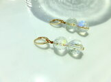 ほんのりオーロラ加工された、珍しいクルミのパーツが涼しげなピアス。