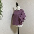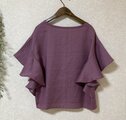 リネン100%のラッフルスリーブブラウス カシス商品が届きました。 何度もリピートさせてもらってます。 製法が丁寧で、フリルが可愛く二の腕がカバーされているデザインなので、これから楽しみです。ありがとうございました。