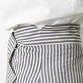 ストライプの柄が少し異なる生地を切り替えて使用しており、単調になりがちなストライプにアクセントを加えました。