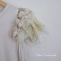 ニュアンスベージュ・レースをかさねて・4種フリルの袖カットソー