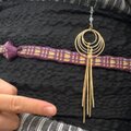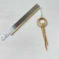シンプルながら金属の重なり合いが美しいお品です。水晶が光を受けてキラキラ輝きます。